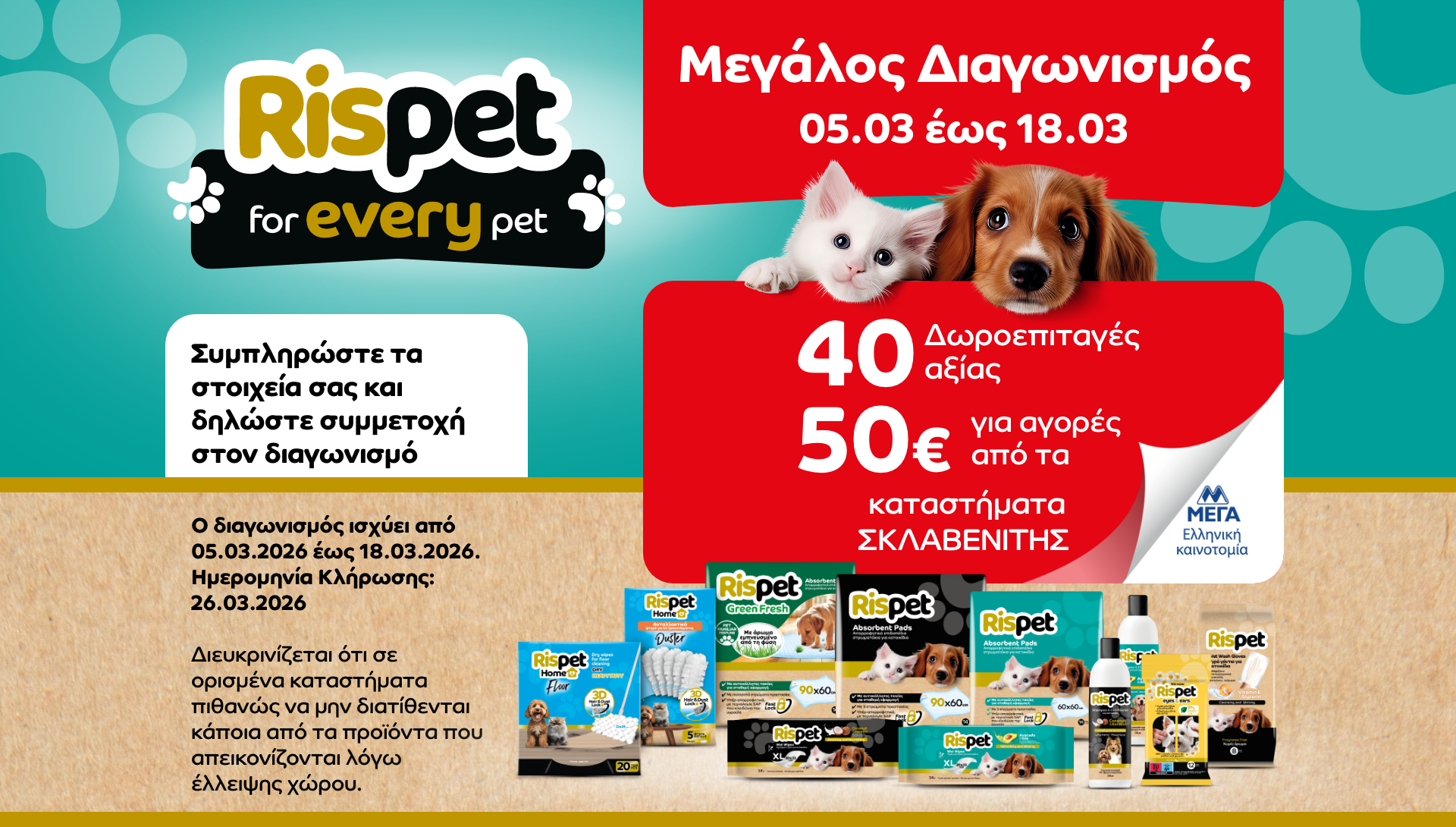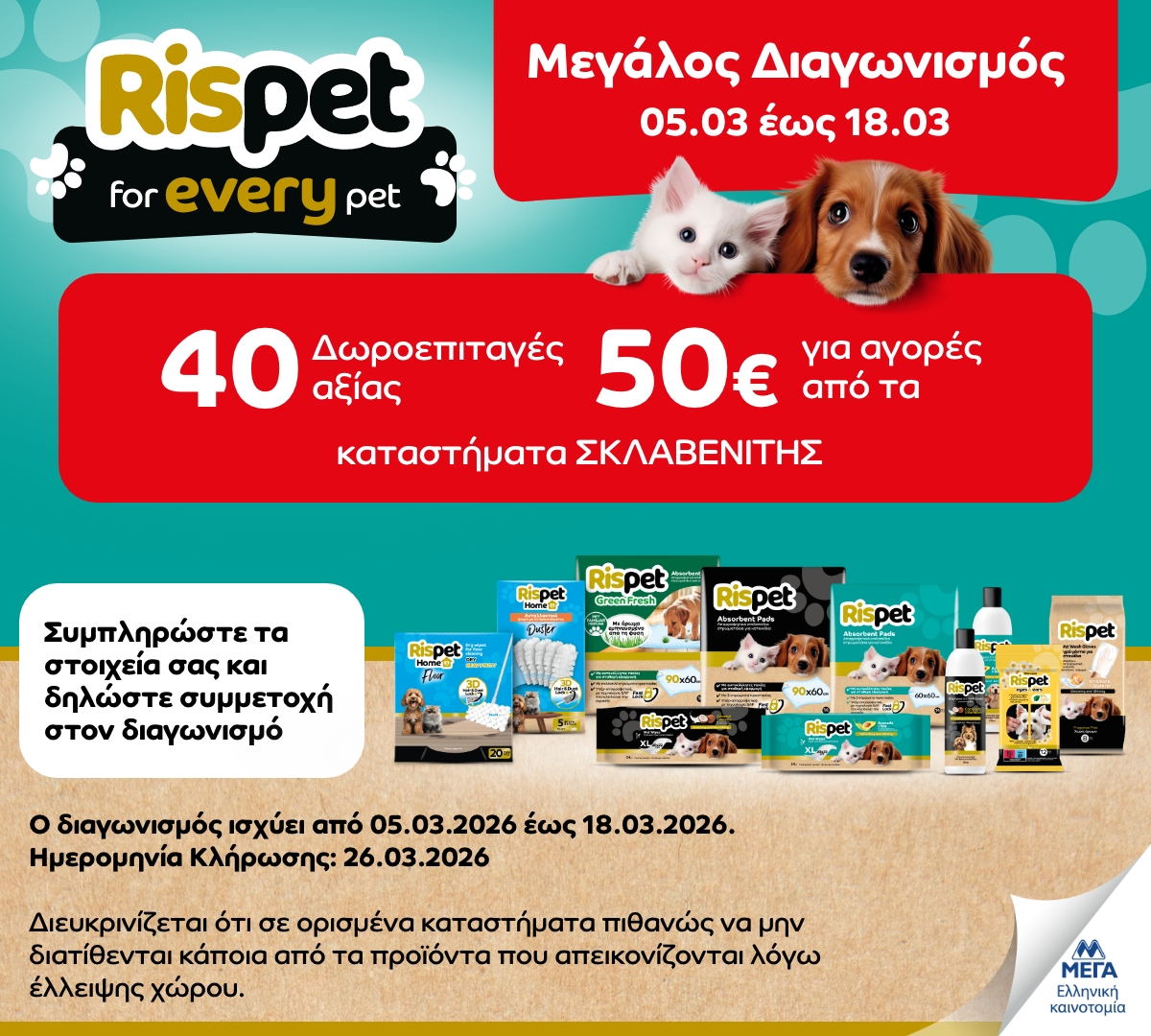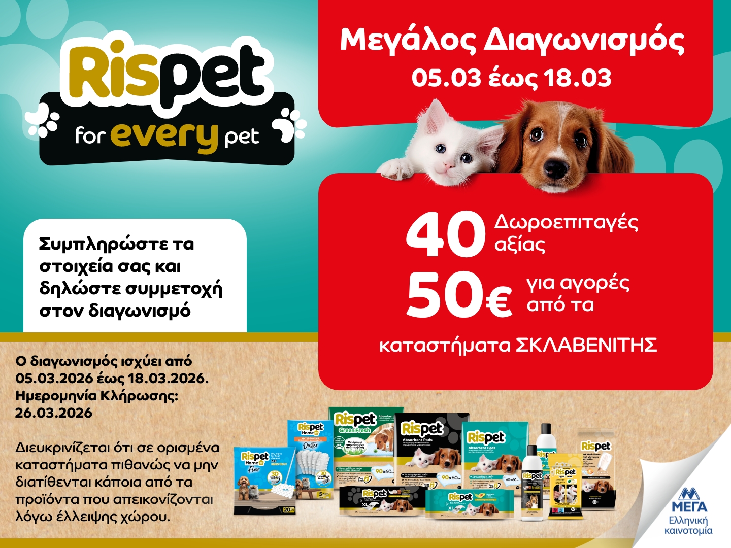 Η εταιρεία «ΜΕΓΑ ΠΡΟΪΟΝΤΑ ΑΤΟΜΙΚΗΣ ΥΓΙΕΙΝΗΣ Α.Ε.» (η «Διοργανώτρια»), η οποία εδρεύει στην οδό Δεκελείας, αρ. 148, Αχαρναί, Τ.Κ. 136 78, όπως νόμιμα εκπροσωπείται, με την υποστήριξη της εταιρείας «MULLENLOWE ΕΠΙΚΟΙΝΩΝΙΕΣ ΜΟΝΟΠΡΟΣΩΠΗ ΑΕ» (η «Διαφημιστική»), που εδρεύει στην Αμαλιάδος 4, Κηφισιά, Αθήνα, ΤΚ 145 64, όπως νόμιμα εκπροσωπείται, διοργανώνει τον παρόντα διαγωνισμό (ο «Διαγωνισμός» ή η «Ενέργεια»), στα Kαταστήματα «ΣΚΛΑΒΕΝΙΤΗΣ» και «ΣΚΛΑΒΕΝΙΤΗΣ Franchise».